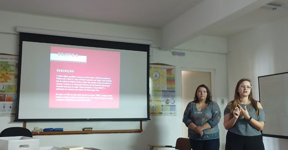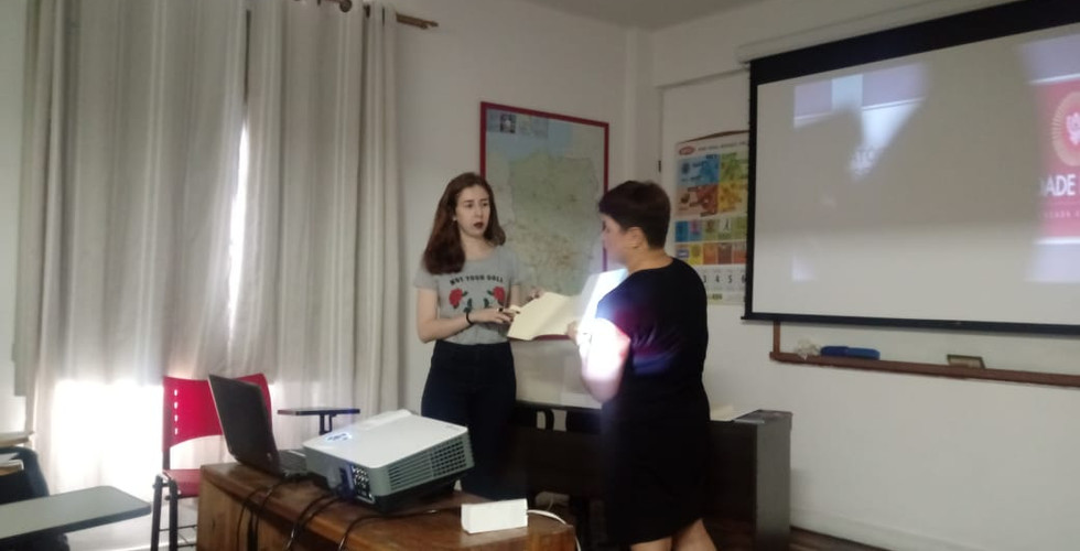 Todo alunos apresentaram seus trabalhos de conclusão da disciplina e, logo após, o Presidente da Sociedade Polônia, Sr. Mariano Hossa, foi convidado para receber todos os livros que foram higienizados durante o semestre.